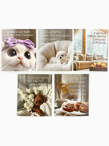 Пусть каждая открытка из этого набора принесет частичку Вашего душевного тепла тому, кому Вы её подарите! Будем счастливы видеть Вас снова.