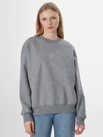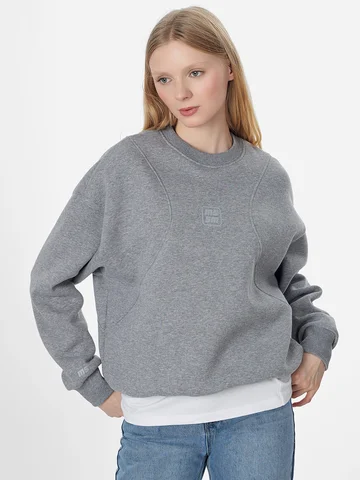 Серый свитшот из плотного футера с начесом подарит ощущение тепла и комфорта в прохладную погоду. Свободный силуэт оверсайз и спущенная линия плеча создают непринужденный, расслабленный образ, идеальный для активного отдыха, тренировок или повседневной носки. Модель отличается выразительными фигурными рельефными швами, которые проходят по переду и спинке. Они не только создают выразительную форму, но и обеспечивают дополнительную свободу движений.