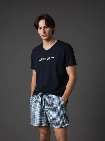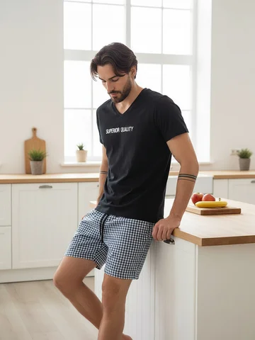 Уютный и мягкий, приятный к телу. Модный принт не оставит равнодушным никого. Стильная футболка и свободные, не стесняющие движения шорты, составляют гармоничный мужской силуэт.