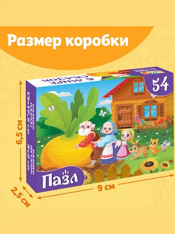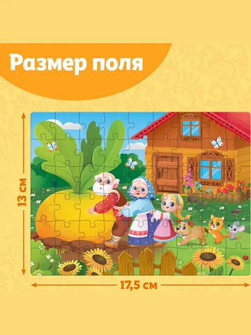 Пазлы детские сказки «Репка», 54 элемента. Пазлы «Детские сказки №2» — это занимательная развивающая игра, которая стимулирует познавательную активность и помогает упорядочить мысли. Соберите все детали в одно целое, и вы получите красочную картинку размером 17,5 × 13 см. Польза собирания пазлов для детей: