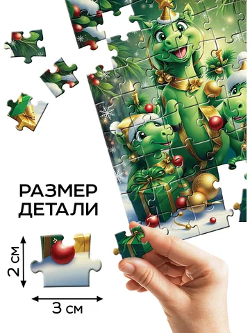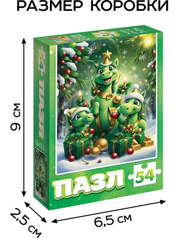 Пазл «Новогодняя радость», 54 элемента. Пазл «Новогодняя радость» — это увлекательная головоломка из 54 элементов, которая перенесет ребенка в мир зимней магии и восточной символики. Этот классический пазл прямоугольной формы создан для детей от 3 лет и станет прекрасным подарком на новогодние праздники или дополнением к семейному досугу. Собирая пазл, ребенок создает яркую картину с очаровательными дракончиками, которые словно оживляют атмосферу праздника. Особенности