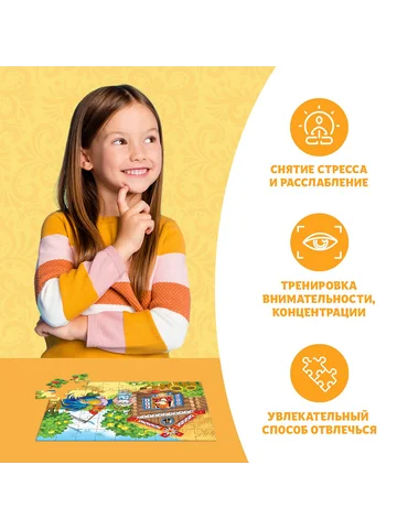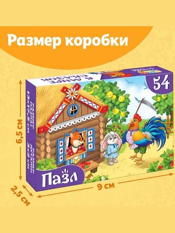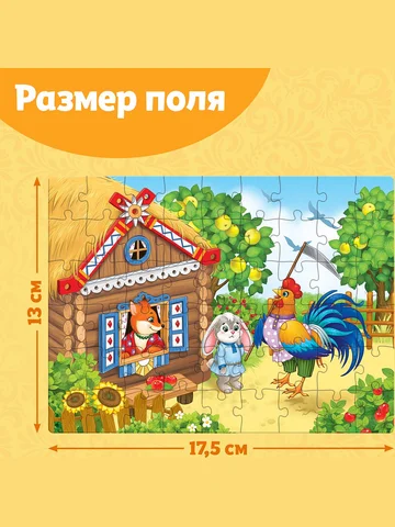 Пазлы детские «Сказки №8», 54 элемента. Пазлы «Детские сказки №8» — это занимательная развивающая игра, которая стимулирует познавательную активность и помогает упорядочить мысли. Соберите все детали в одно целое, и вы получите красочную картинку размером 17,5 × 13 см. Польза собирания пазлов для детей: