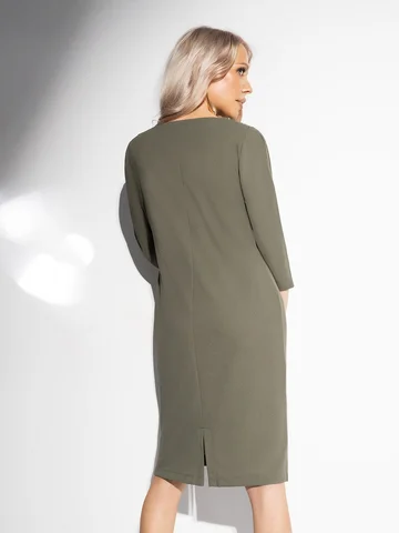 Это платье звучит как внутренний дзен. Мягкие линии, умиротворенный оттенок, женственная пластика ‒ все работает на ощущение цельности и красоты. Гармония здесь не эффект, а состояние. Подойдет для тех, кто любит натуральные оттенки и ценит равновесие в образе и жизни. Платье с акцентными декоративными молниями на рукавах.