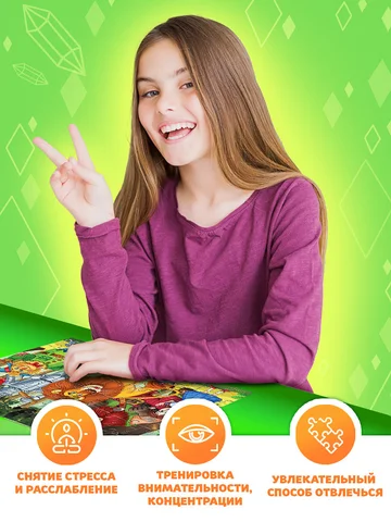 - Идеальный уровень сложности. 60 деталей — достаточно, чтобы почувствовать вызов, но не перегрузить. Подходит детям от 5 лет, особенно тем, кто уже пробовал пазлы среднего размера.