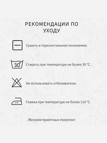 - Простой уход: деликатная стирка при 30°C и бережная сушка в барабане.