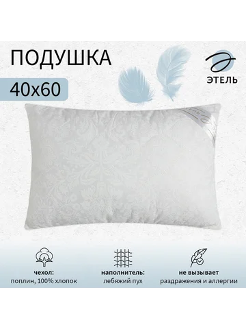 Подушка «Этель», лебяжий пух, 40×60 см, поплин. Эта подушка с искусственным лебяжьим пухом — ваш пропуск к глубокому и восстанавливающему сну. Она создана, чтобы мягко обволакивать шею и голову, обеспечивая идеальную поддержку среднего профиля. Поплиновый чехол из хлопка приятен на ощупь и обеспечивает оптимальный воздухообмен для комфорта в любое время года. Ключевые преимущества