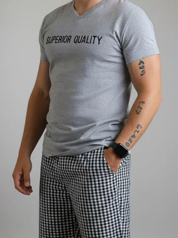 Уютный и мягкий, приятный к телу. Модный принт не оставит равнодушным никого. Стильная футболка и свободные, не стесняющие движения шорты, составляют гармоничный мужской силуэт.