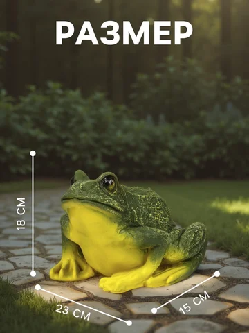 Садовая фигура из полистоуна «Лягушка», 18×15×23 см. Садовая фигура — это всегда стильное и яркое решение для ландшафтного декора, который добавит уюта и индивидуальности дачному участку, саду, огороду или клумбе. С ее помощью можно оформить вход на участок, разграничить пространство, разметить дорожку, создать тематическую атмосферу и превратить сад в единую композицию (подробнее можно найти в статье Инструкции по уходу за садовыми фигурами .