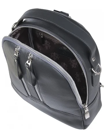 Рюкзак-сумка женский с одним отделением на молнии. Внутри потайной карман на молнии и открытый карман. Снаружи спереди два кармана на молнии и сзади карман на молнии. Имеет короткую ручку для переноски. Два съемных регулируемых ремня(85см) на карабинах позволяют носить изделие как рюкзак и как сумку через плечо. Материал: Натуральная кожа Ладога. Натуральная эластичная кожа с полированной лицевой поверхностью с полиуретоновой отделкой, Размер: 220x250x80