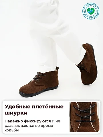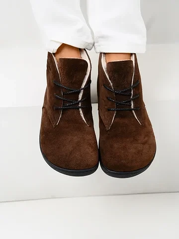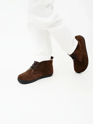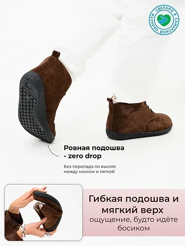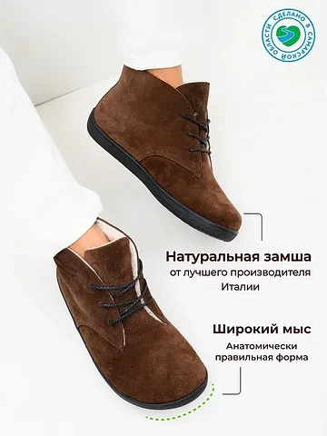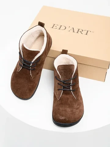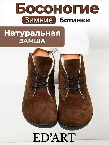 Откройте для себя новый стандарт комфорта от бренда ED'ART. Эти ботинки из натуральной замши и кожи в благородном оттенке «какао» объединяют в себе изысканный стиль и инновационную босоногую (barefoot) колодку.