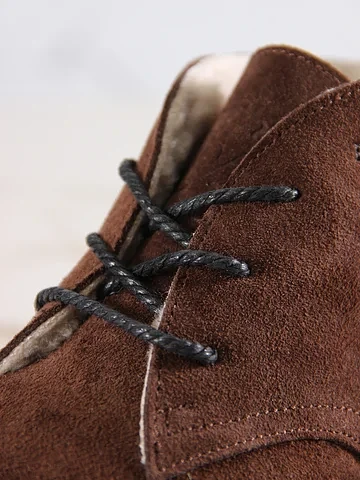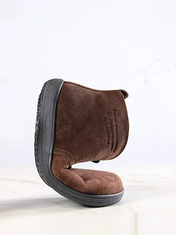 Эти ботинки — ода благородству и изысканности. Их верх из мягкой, бархатистой замши притягивает взгляд своей текстурой и глубиной. Этот материал не только выглядит стильно, но и обещает долговечность и защиту от зимних сюрпризов.