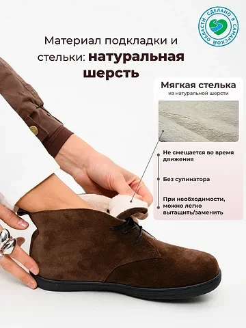 - Подкладка и стелька: Натуральная шерсть.