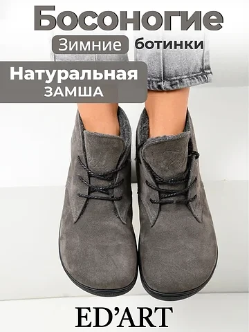 Босоногие ботинки зимние натуральная замша ED'ART