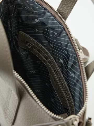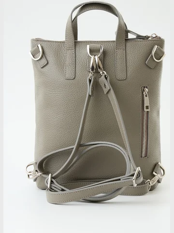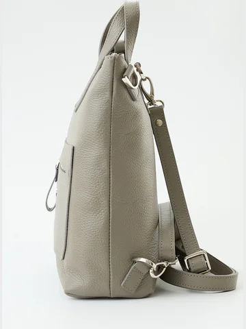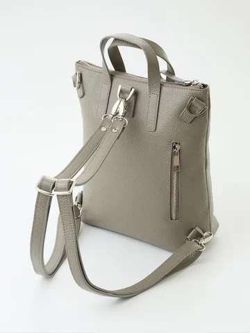 Сумка-рюкзак с одним отделением закрывается на молнию. Внутри потайной карман на молнии и большой открытый карман. Снаружи спереди и сзади карманы на молнии. Две короткие ручки(22см) и две регулируемые лямки(100см). Материал: Натуральная кожа Флорида. Особоэластичная, мягкая на ощупь натуральная кожа с естественной лицевой поверхностью, отделанная итальянскими материалами, Размер: 220x280x100