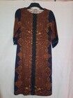 Удобное платье на каждый день из трикотажного полотна черно-коричневого цвета. Круглый вырез изделия обработан внутренней обтачкой. Втачные рукава и перед изделия дополнены кружевом. Длина изделия по спинке от плечевого шва до низа изделия - 96 см. Рост фотомодели — 170 см.