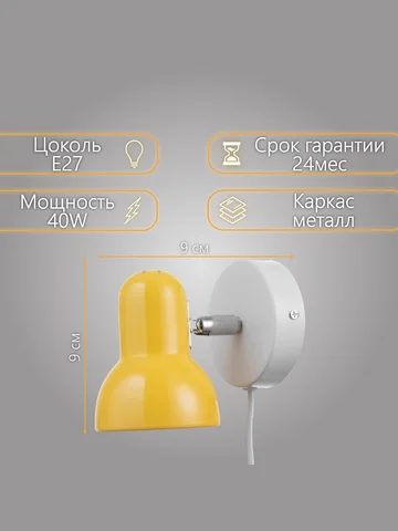 - Теплый свет и яркий акцент: Желтый металлический плафон дарит помещению солнечное настроение. Компактный размер (9×9×14 см) позволяет разместить светильник даже в небольших зонах.