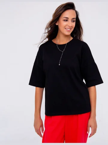 Свободная футболка из плотного хлопка. На мой рост чуть длинновата, но это приемлемо.