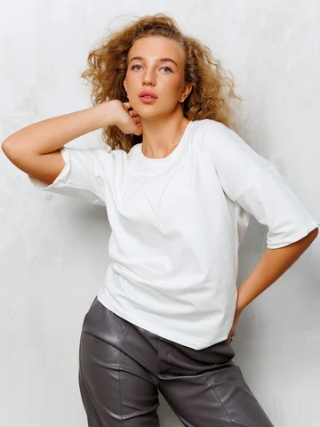 Футболка красивая,полностью соответствует той,что на модели:цвет,фасон.Отлично смотрится с такими же брюками.Есть только один минус- футболка пришла в не запечатанном,открытом пакете внутри посылки,бирка была с одной стороны вырвана,этикетка валялась отдельно.Не понятно,либо её отправили в таком виде,либо посылку вскрывали.Было не очень приятно.Балл сняла только за это.
