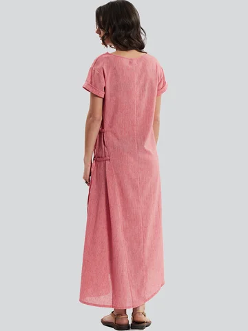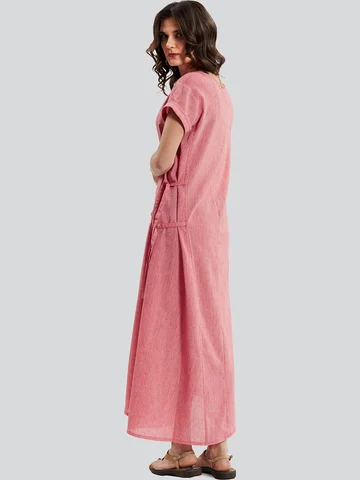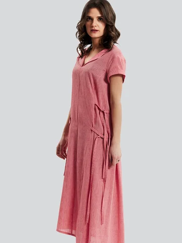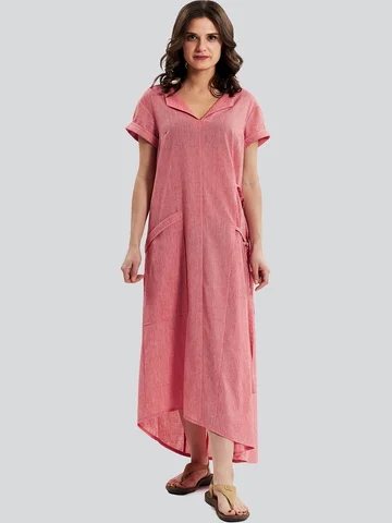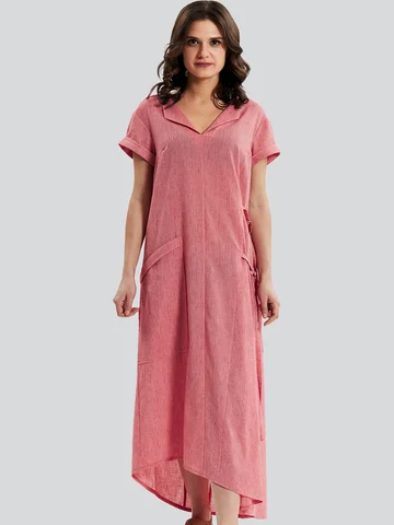 Оригинальное длинное льняное платье с V - образным вырезом, с коротким рукавом и ассиметричным низом, российского производства бренда D'imma. Широкий размерный ряд, в том числе большие размеры. Карманы интересного дизайна и декоративные завязки сбоку, с помощью которых можно менять силуэт изделия.