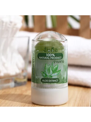 Дезодорант кристаллический Алоэ вера, без запаха, 60 г. Описание: минеральный дезодорант-кристалл изготавливается из горно-вулканического камня алунита - природного антисептика. Он губит бактериальные клетки, чья жизнедеятельность является источником неприятного запаха пота и причиной воспалительных процессов. Сок алоэ усиливает противовоспалительное действие. Без запаха! Дезодорант эффективно защищает от образования неприятного запаха, при этом не блокирует потовые железы, не наносит вред здоровью. Одного дезодоранта хватит на целый год ежедневного использования. Не оставляет следов на одежде. Единственный безвредный дезодорант, разрешенный к применению астматикам, беременным и кормящим женщинам. Гипоаллергенный, идеален для чувствительной кожи. Способ применения: намочите дезодорант водой и, после утреннего душа или ванны, протрите им зоны повышенной потливости, как сделали бы это роликовым или твердым дезодорантом. Поверхность дезодоранта, растворяясь в воде, покрывает тончайшим налетом вашу кожу, надежно защищая от бактерий. Состав: квасцы, экстракт алоэ вера.