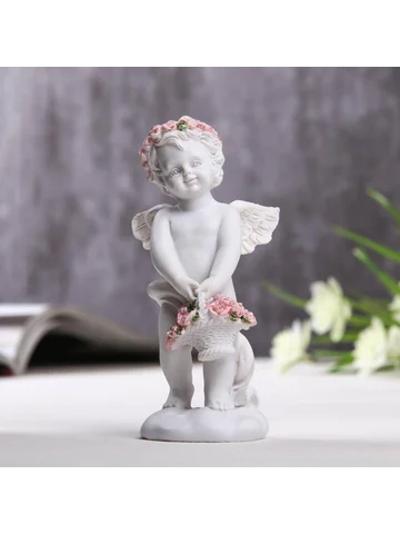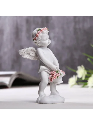 - Изящная фигурка ангела с миниатюрной корзинкой роз.