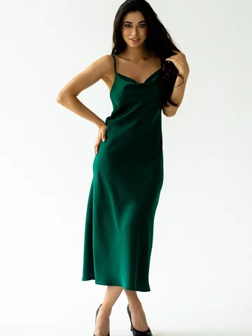 Цвет изумрудный, на мой рост длина макси, под каблук идеально.
