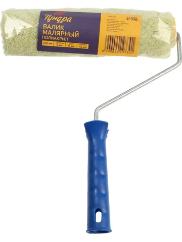 Валик ТУНДРА, полиакрил, 240 мм, рукоятка d=6 мм, D=42 мм, ворс 18 мм. Валик предназначен для нанесения краски, грунтовки и эмали на ровную поверхность во время покрасочных работ.