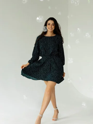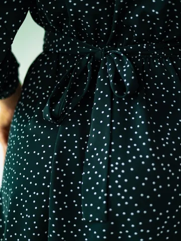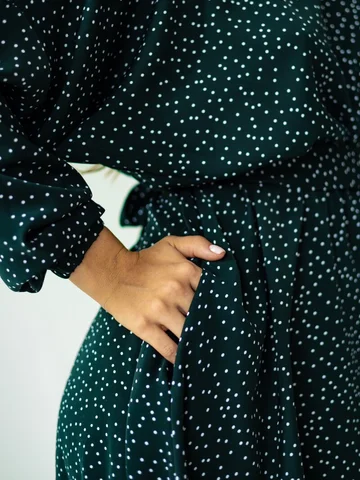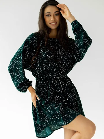 Платье в целом неплохое, цвет темнее, почти черный, изумруд видно только при хорошем освещении и очень широко сверху в рукавах, поэтому отказ.