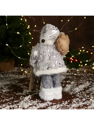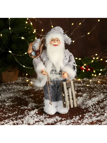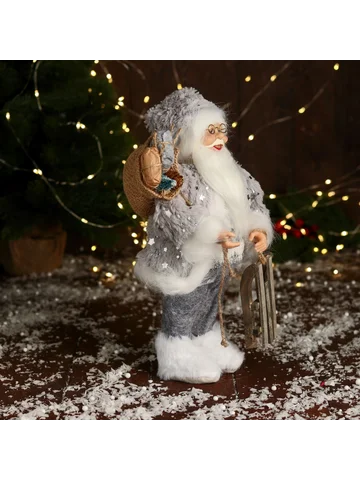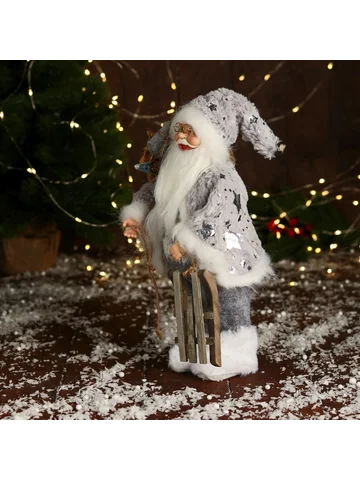 Дед Мороз под елку «Зимнее волшебство. Новогодняя игрушка в блестящей шубе», 28 см, серебристый. Статуэтка «Дед Мороз в блестящей шубе с санями, 28 см» станет потрясающим акцентом среди новогоднего декора. Эта композиция гармонично дополнит пространство под елкой, на полке или в фотозоне. Особенности