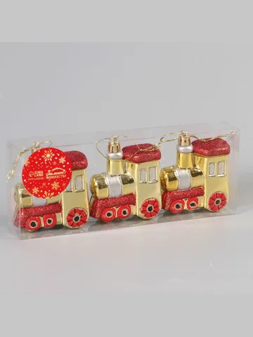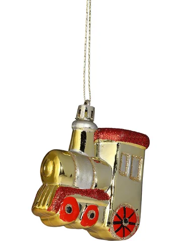 - Стилевое сочетание: Форма паровозика и золото-красная палитра объединяют роскошь барокко и простоту советского стиля. Украшения впишутся в классическую елку, гирляндную композицию или смешанный декор. Рисунок добавляет детализацию без излишней вычурности.