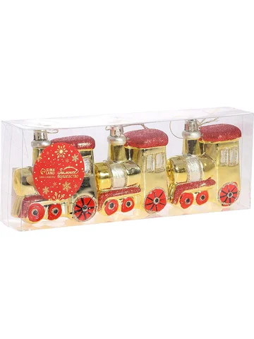 Ёлочные игрушки 3 шт. «Зимнее волшебство. Паровозик» пластик, 6.5×7 см, золото. Добавьте динамики в праздничный декор – золото-красные паровозики в стиле барокко и советского дизайна для новогодней елки! Золотые новогодние паровозики – набор из 3 игрушек, сочетающих пышность новогоднего барокко и ностальгию по советским праздникам. Их размер – 6,5×7 см, что делает акцент заметным, но не перегружает композицию.