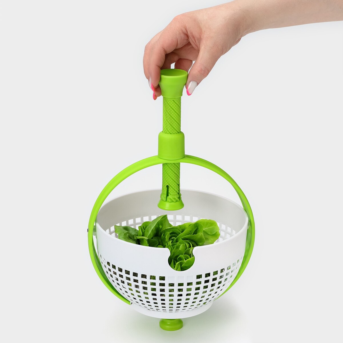 Центрифуга для сушки зелени, зеленая. Тренд на здоровый образ жизни, вегетарианство и даже веганство находит свое отражение и в кухонных аксессуарах. Многофункциональная сушилка - настоящая находка для тех, кто не может представить свою жизнь без зелени, овощей и фруктов.