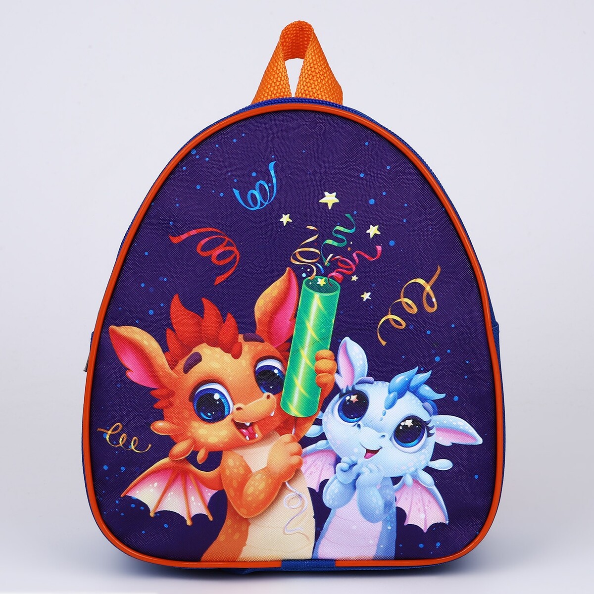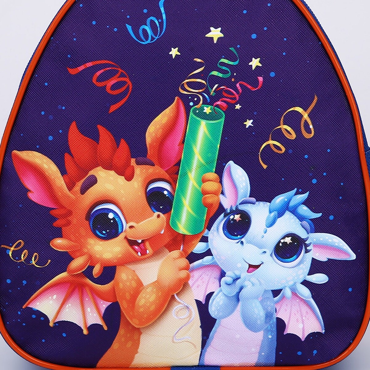 Рюкзак детский новогодний «Дракончики с хлопушками», 23×20.5 см. В новогодние праздники уделите упаковке подарков особое внимание. Ведь разворачивание презента в самую волшебную ночь года — особенный ритуал, такой же сказочный, как и само торжество. Тематический рюкзак станет прекрасным оформлением вашего гостинца. В него можно положить что угодно: конфеты, игрушки, любые приятные мелочи. Он сделает ваш презент особенным и сама станет запоминающимся подарком. А обычные сладости, упакованные таким образом, превратятся в настоящий сюрприз.