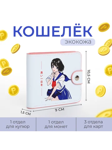 Кошелек детский «Аниме», на кнопке, голубой.