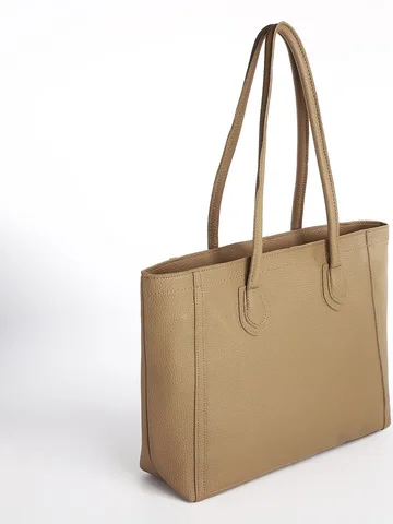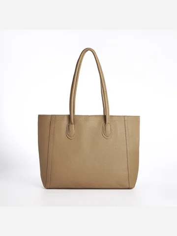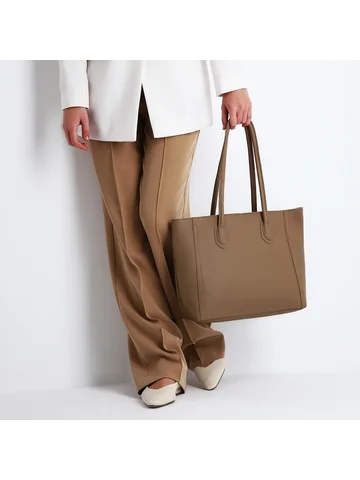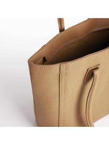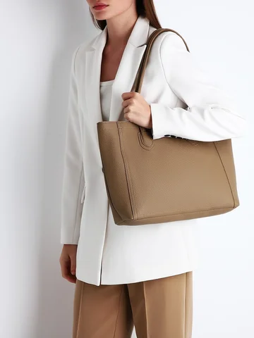 Шоппер женский, на молнии, 33×12×28 см, однотонный, бежевый No brand