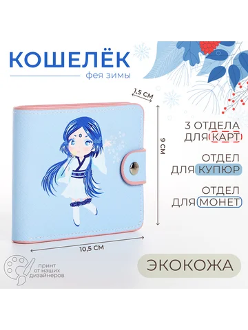 Кошелек детский «Фея Зимы», для девочки, маленький, на кнопке, голубой. Этот голубой детский кошелек с рисунком девочек создает аккуратное пространство для первых финансовых открытий ребенка. Его свежий цвет и добрый дизайн помогают девочке почувствовать ответственность за личные вещи. Особенности
