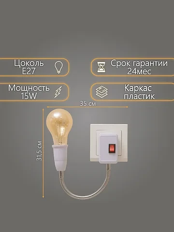 - Гибкость в выборе лампы: Цоколь E27 позволяет использовать как светодиодные, так и лампы накаливания мощностью до 15 Вт. Вы сами выбираете уровень яркости и комфортную температуру света.