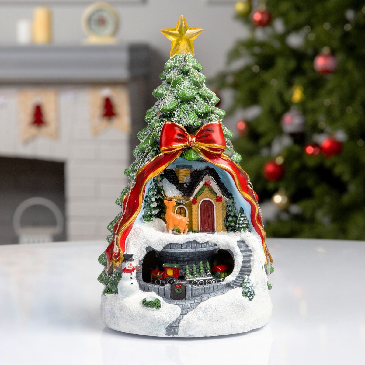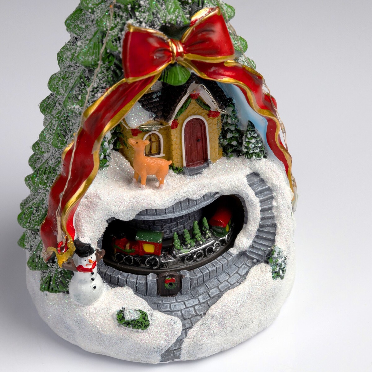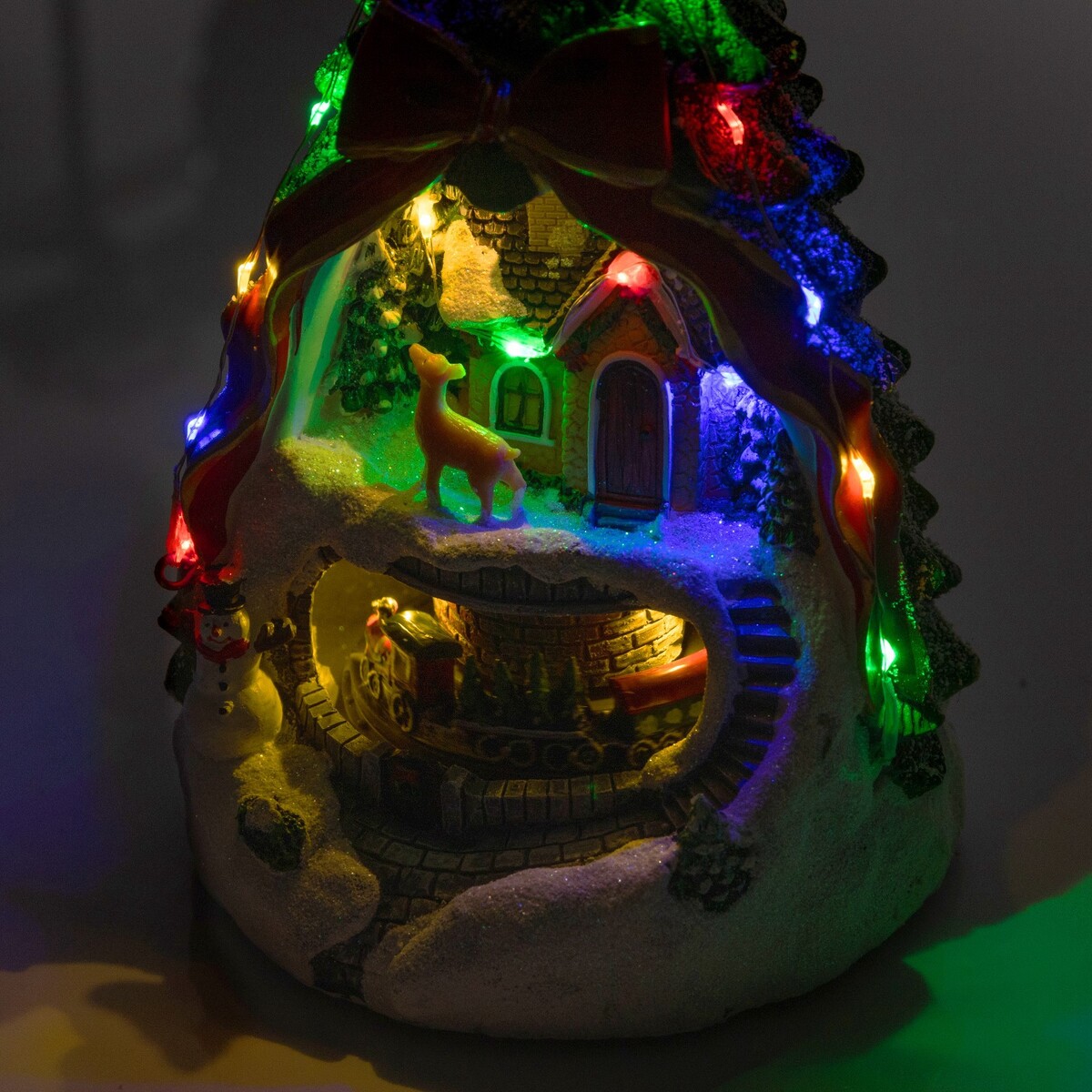 Светодиодная фигура «Поезд и олененок» 26×14×14 см, полистоун, от батареек АААх3, свечение мульти.