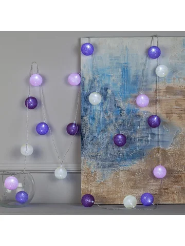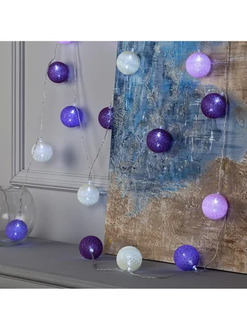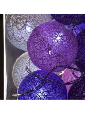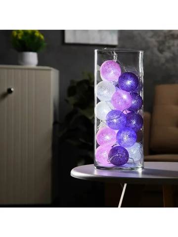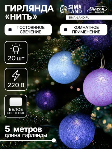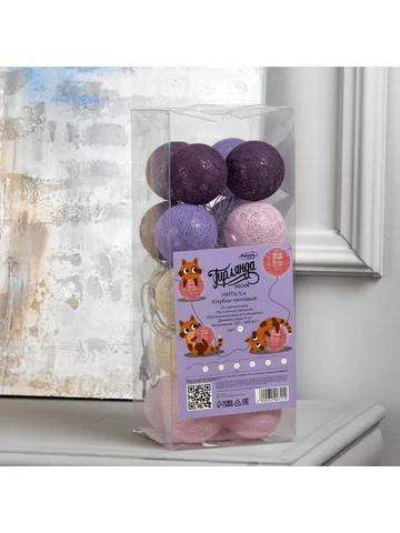 Гирлянда «Нить» 5 м с насадками «Клубки лиловые», IP20, прозрачная нить, 20 LED, свечение белое, 220 В.