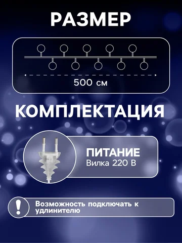 Настройки вашего экрана влияют на отображение фотографии, поэтому реальный цвет товара может незначительно отличаться от фото., Оттенок товара может отличаться в зависимости от партии поставки., Длина гирлянды указана без учета длины шнура питания — измеряется от первого до последнего светодиода, не включая провод.
