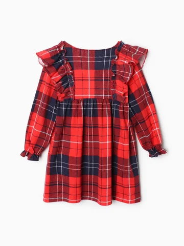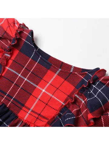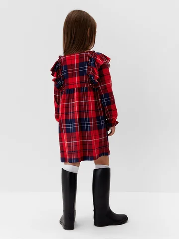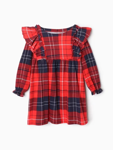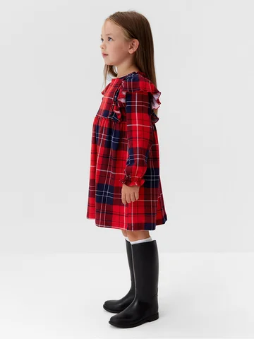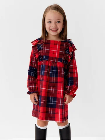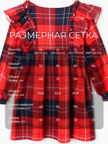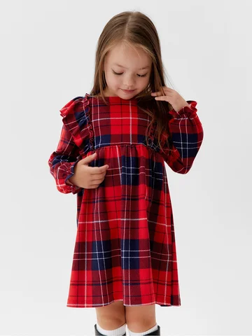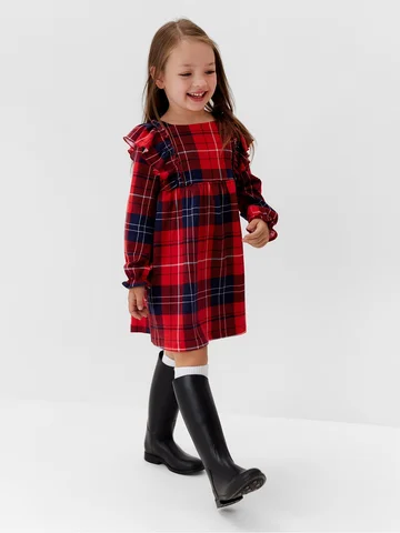 Платье для девочки KAFTAN «Клетка» с рюшами, красное, рост 98-104 см.