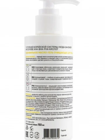 Гидрофильное масло-гель очищающее для лица AHA-BHA-PHA SelfieLab 150мл. Гидрофильное масло гель на основе AHA-BHA-PHA кислот бережно очищает кожу от загрязнений, водостойкого макияжа, не оставляя чувство стянутости и сухости кожи. Удаление макияжа – первый этап в многоступенчатой системе корейского ухода. AHA (гликолевая, яблочная, молочная, лимонная кислоты) – выравнивают цвет и текстуру кожи, осветляют гиперпигментацию, повышают тонус и естественную увлажненность кожного покрова. BHA (салициловая кислота) – глубоко отшелушивает ороговевшие клетки, очищает и сужает поры, предотвращает появление черных точек. PHA (глюконолактон) – защищает эластиновые и коллагеновые волокна, обеспечивает высокий уровень антиоксидантной защиты, оказывает фотопротекторное воздействие. Применение: нанесите небольшое количество масло-геля на сухую кожу, помассируйте 1-2 минуты, смойте теплой водой. Меры предосторожности: при попадании масло-геля в глаза рекомендуется промыть их водой. Состав: Aqua, Sodium Cocosulfate, Cocamidopropyl Betaine, Acrylates Copolymer, Decyl Glucoside, Glycerin, Poloxamer 184, Malic Acid, Glycolic Acid, Lactic Acid, Salicylic Acid, Tilia Cordata (Linden) Flower Extract, Propylene Glycol, Potassium Sorbate, Sodium Benzoate, Coffea Arabica (Coffee) Seed Extract, Almond Oil Glycereth-8, Esters, Grape Seed Oil Glycereth-8 Esters, Citric Acid, Sodium Chloride, Gluconolactone, Sodium Hydroxide, Phenoxyethanol, Ethylhexylglycerin, Parfum.
