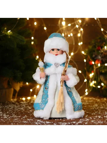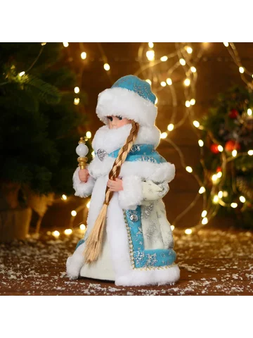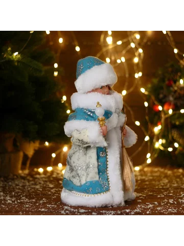 Снегурочка под елку «Зимнее волшебство. Голубая шубка» двигается, 28 см. Фигурка Снегурочки в голубой шубке высотой 28 см оживляет праздничное оформление благодаря плавным движениям. Этот элемент декора объединяет советские традиции и современный фьюжн-стиль, придавая новогоднему интерьеру особую атмосферу тепла и волшебства. Особенности