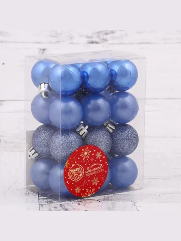 - Комплектация — 24 штуки, достаточно для полного украшения елки средней величины.