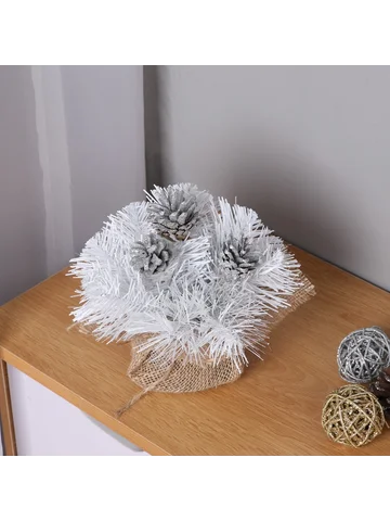 Новогодняя хвойная композиция на стол 20 см «Скандинавия», заснеженная, декор шишки, серебро. Заснеженная настольная елочная композиция с серебристыми шишками и белой хвойной зеленью создает спокойную атмосферу зимнего уюта. Изготовленная из ПВХ, она сохраняет форму и цвет, подчеркивая сдержанную красоту скандинавского и классического стилей. Особенности