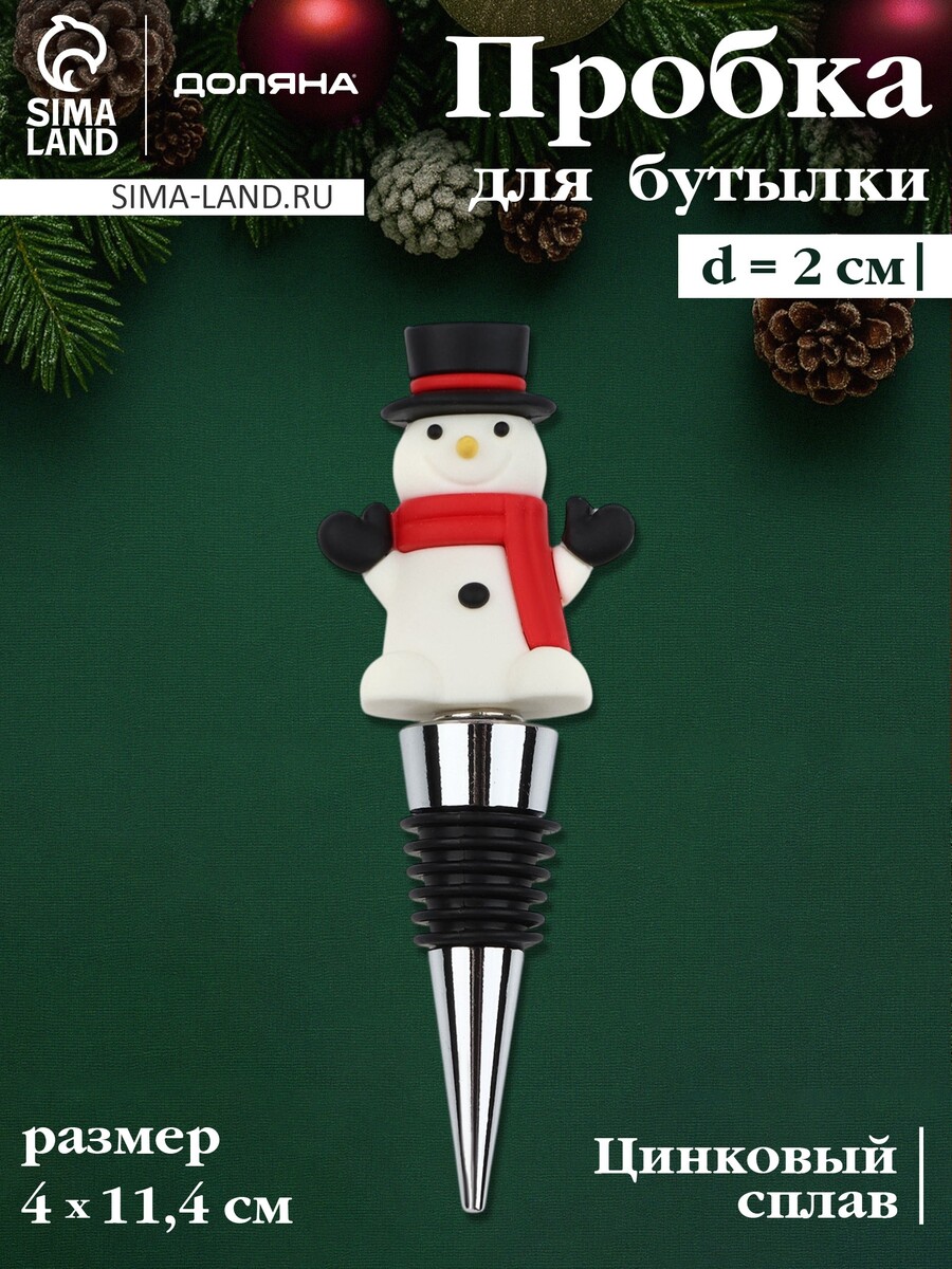 Пробка для бутылки новогодняя Доляна «Снеговик», 12 см. Как только вы открываете вино, из-за контакта с воздухом начинается его неизбежное интенсивное окисление. С помощью данного аксессуара вы сможете сохранить вкус и аромат праздничного напитка как можно дольше. Благодаря необычому дизайну пробка станет не только функциональным кухонным инструментом, но и ярким декоративным элементом сервировки стола. Преимущества изделия: