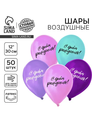 Воздушные шары латексные 12" «С днем рождения», 25 шт..