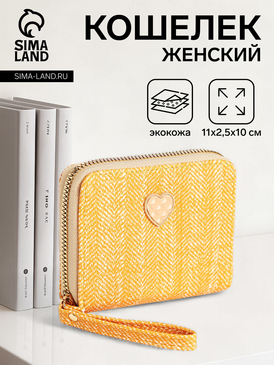Кошелек на молнии «Сердечко», желтый. Желтый кошелек с сердечком — это первый взрослый аксессуар для маленькой модницы. Яркий дизайн с символом любви делает хранение карманных денег трогательным ритуалом. Особенности