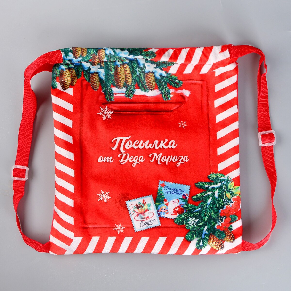 Рюкзак - мешок детский новогодний «Посылка от Деда Мороза», 35×30 см. Рюкзак с надписью: «Посылка от Деда Мороза» — это отличный вариант оформления подарка для ребенка на Новый год. Сложите в рюкзак все, что подарит Дед Мороз и положите под елку — малыш с удовольствием будет распаковывать сюрприз! После праздников рюкзак можно использовать для хранения игрушек или брать его с собой на прогулки и в путешествия. Особенности