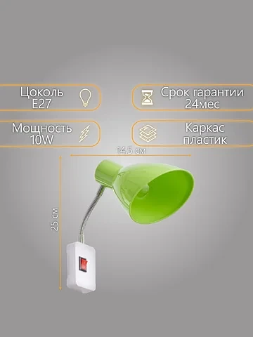 Бра в розетку «Классика» 1×10 Вт Е27 зеленый 10×14.5×25 см. Свет, который дарит свежесть и уют! Бра в розетку с зеленым плафоном — это мобильное и стильное решение для освещения гостиной, детской комнаты, кухни или коридора. Не требует монтажа и готов к использованию сразу после подключения.